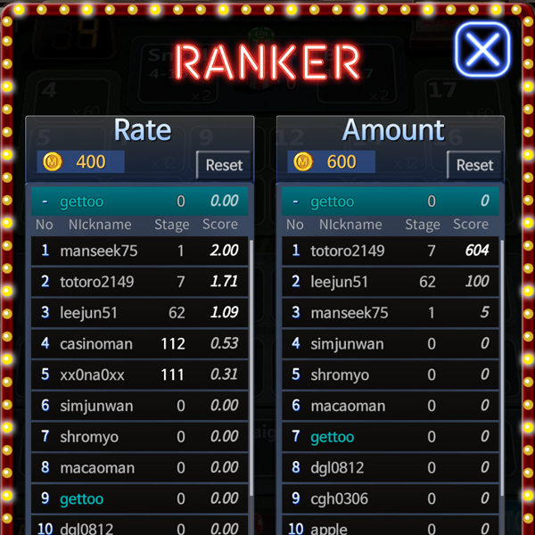 Every hour, bonuses are awarded to the players with the highest win rate and the highest earnings.